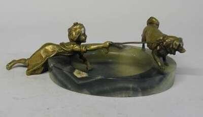 Amusing Austrian gilt bronze and onyx ashtray early 20th century
