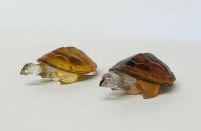 Two Lalique amber glass sea turtles