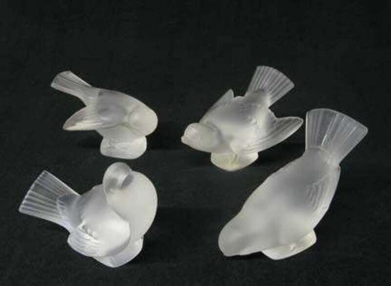 Group of four Lalique glass sparrows