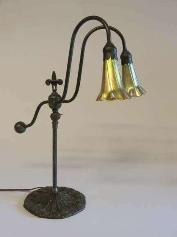 Tiffany Studios style bronze counterbalanced lamp circa 1985