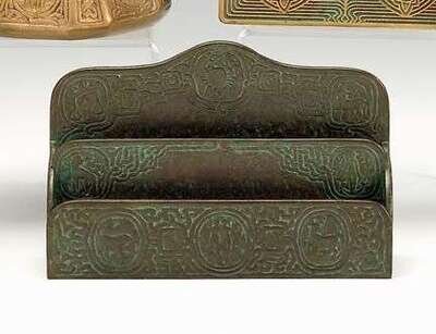 Tiffany Studios 'Zodiac' bronze letter rack early 20th century