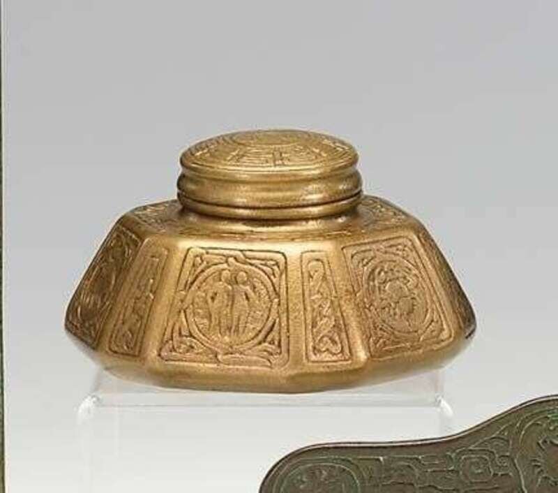 Tiffany Studios gilt bronze 'Zodiac' inkwell early 20th century