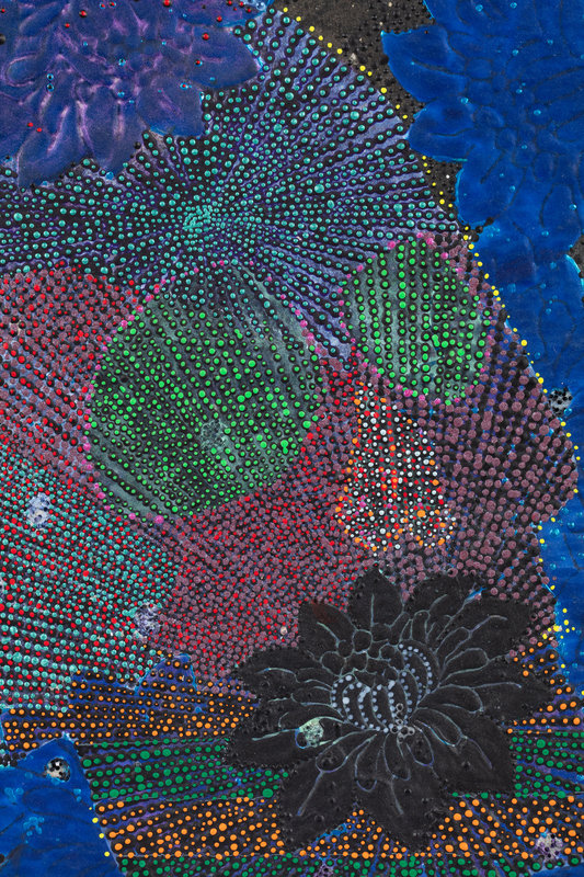 acrylic and mixed media on mulberry paper on wood