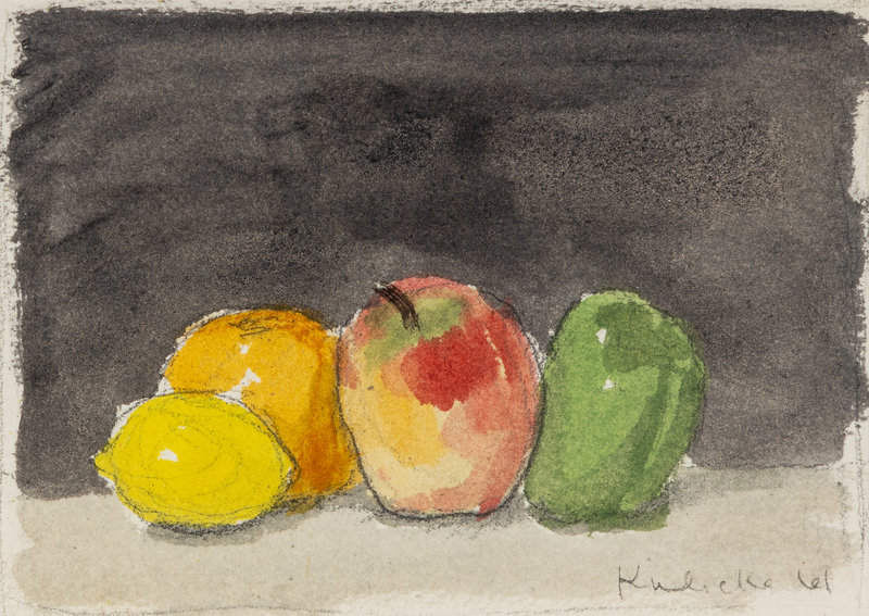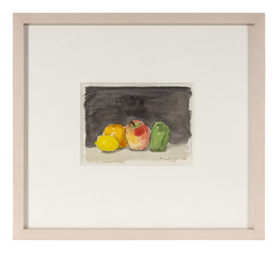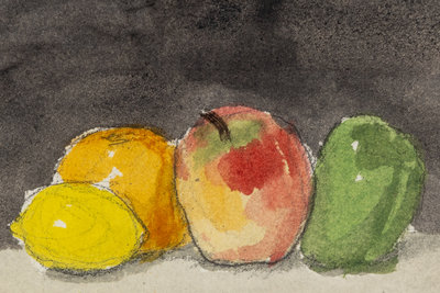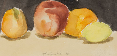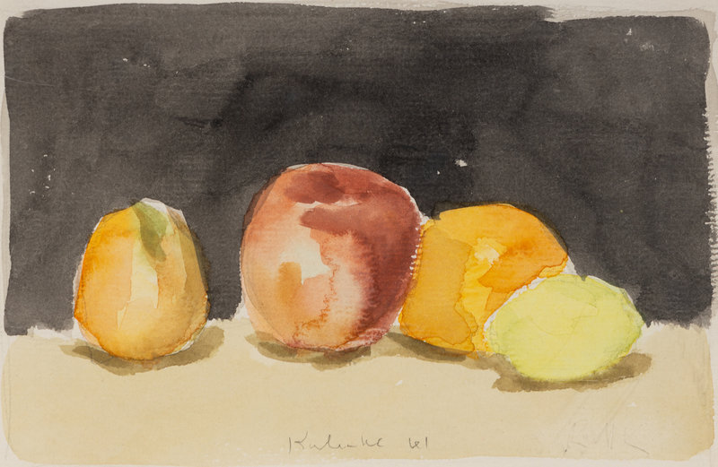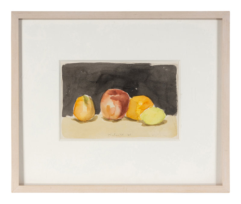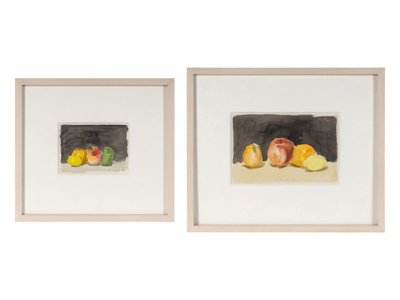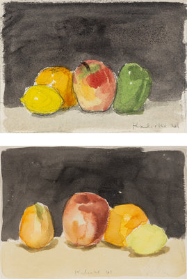 Fruit with Black Background and Green Pear and Red Apple (Two Works), 1961