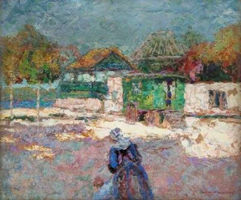 VICTOR CHARRETON (FRENCH 1864-1936) WOMAN ON A SUNLIT ROAD