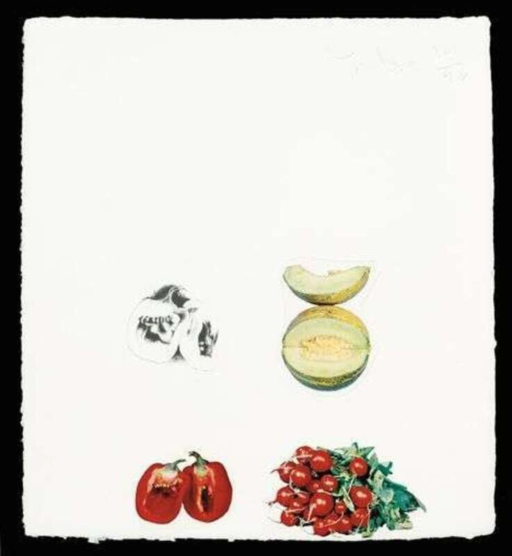 JIM DINE (AMERICAN B. 1935)TWO OFFSET LITHOGRAPHS WITH PHOTOGRAPHIC COLLAGE "VEGETABLES V"; AND "VEGETABLES VII"FROM THE VEGETABLES PORTFOLIO OF EIGHT PRINTS