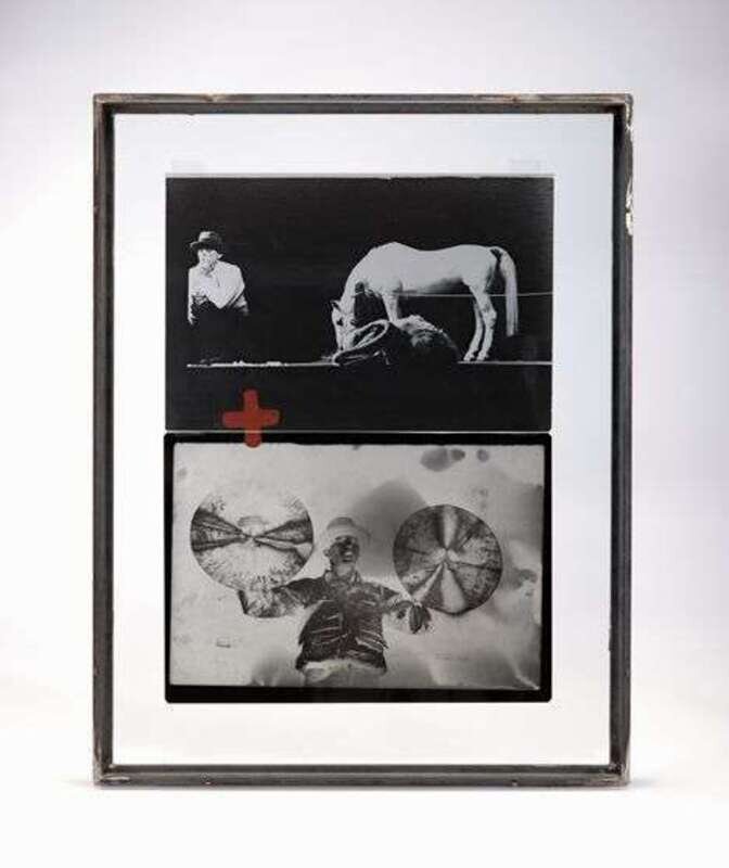 1985, signed and indistinctly numbered 30/45 on label, photographic negative and positive with stamped cross in paint, fixed between glass sheets, the whole within an iron frame, Edition Schellmann, publisher.