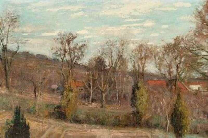 PIERRE ROUSSEL (FRENCH 1927-1995) "TREES AND HOUSES IN A LANDSCAPE"