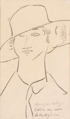 AMEDEO MODIGLIANI (ITALIAN 1884-1920) "YOUNG WOMAN IN A BROAD HAT"