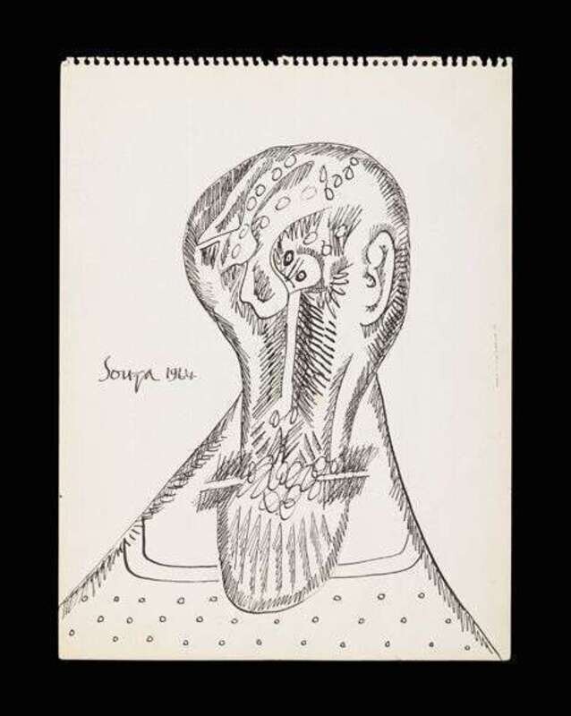 Signed and dated "Souza 1964" center left, inscribed verso "Estate of F N Souza / Shelley 1PR-001", black ink on paper, unframed