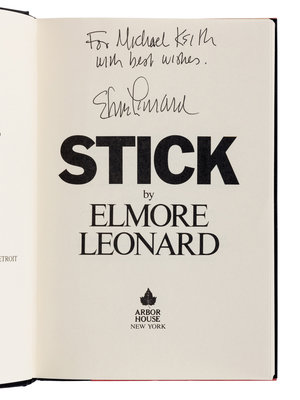 2) Stick. New York: Arbor House, 1983. Original cloth; publisher’s dust jacket. PRESENTATION COPY, INSCRIBED BY LEONARD.