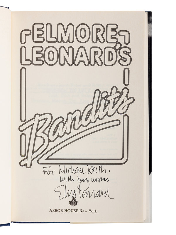 4) Bandits. New York: Arbor House, 1987. Original cloth; publisher’s dust jacket. PRESENTATION COPY, INSCRIBED BY LEONARD.