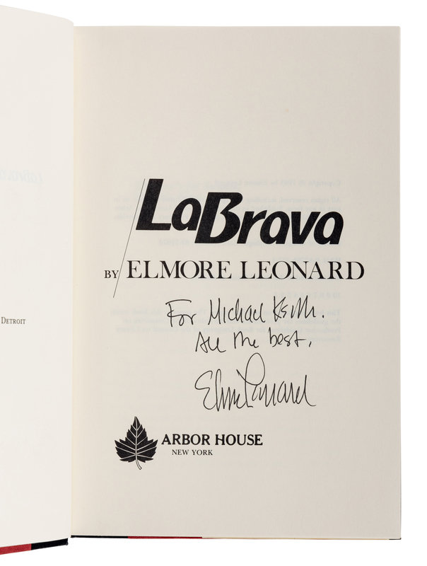 1) La Brava. New York: Arbor House, 1983. Original cloth; publisher’s dust jacket. PRESENTATION COPY, INSCRIBED BY LEONARD.