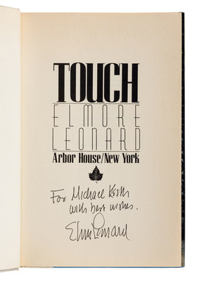 3) Touch. New York: Arbor House, 1987. Original cloth; publisher’s dust jacket. PRESENTATION COPY, INSCRIBED BY LEONARD.
