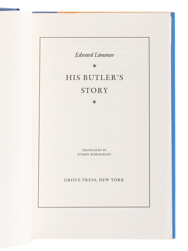LIMONOV, Edward [Eduard Limonov] (1943-2020). His Butler’s Story. Judson Rosengrant, translator. New York: Grove Press, [1987].