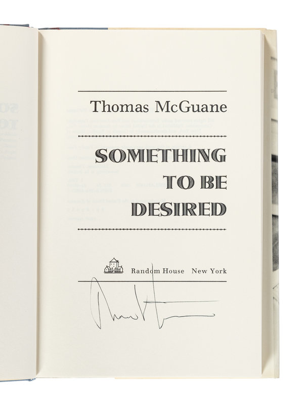 6) Something to Be Desired. New York: Random House, 1984. Original cloth; publisher's dust jacket. FIRST EDITION, INSCRIBED BY MCGUANE.