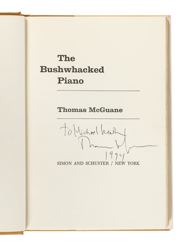 2) The Bushwhacked Piano. New York: Farrar, Straus, & Giroux, 1971. Original cloth; publisher's dust jacket. FIRST EDITION. INSCRIBED BY MCGUANE.