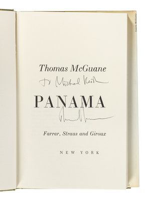 3) Panama. New York: Farrar, Straus, & Giroux, 1978. Original cloth; publisher's dust jacket. FIRST EDITION. INSCRIBED BY MCGUANE.