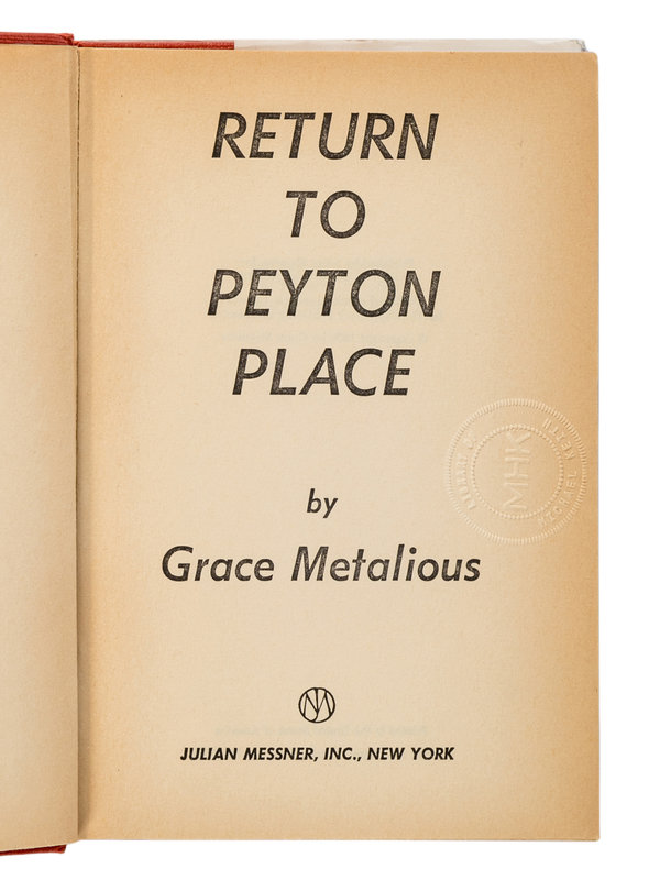METALIOUS, Grace (1924-1964). Peyton Place. New York: Julian Messner, Inc., 1956.