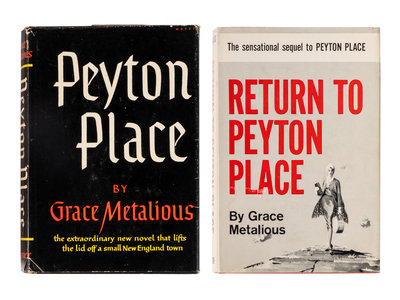 [With:] Return to Peyton Place. New York: Julian Messner, 1959. 8vo. Original publisher's cloth and dust jacket. Provenance: Blind stamp on title and owner's signature. FIRST EDITION of Metalious's sequel to her sensational first novel.