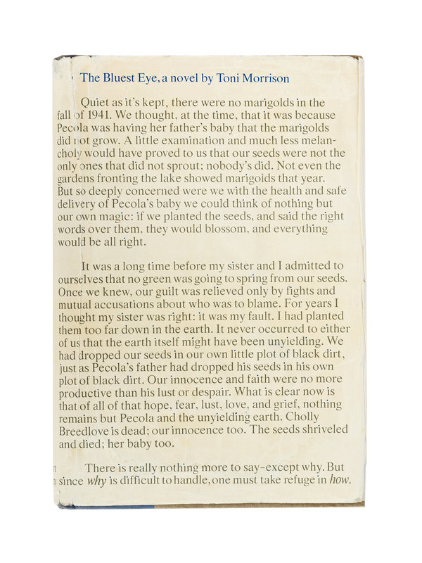 MORRISON, Toni (1931-2019). The Bluest Eye. New York, Chicago, San Francisco: Holt, Rinehart and Winston, 1970.