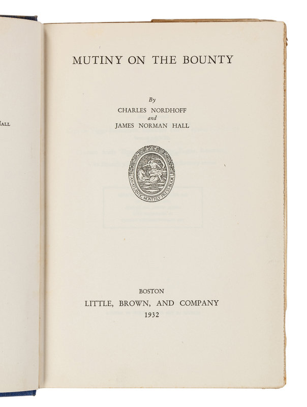 NORDHOFF, Charles (18878-1947), and James Norman HALL (1887-1951). Mutiny on the Bounty. Boston: Little, Brown, and Company, 1932.