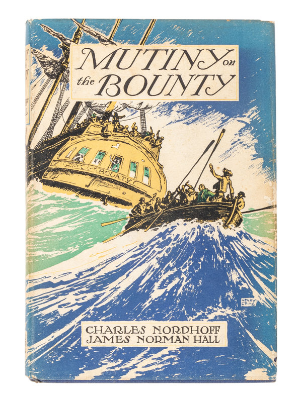 FIRST EDITION, FIRST ISSUE, with plain endpapers. IN THE FIRST DUST JACKET priced $2.50 and without reviews. Nordhoff and Hall's novel, based on the true adventures of the H.M.S. Bounty, was the basis for several film adaptations, the most well-known being the 1935 and the 1962 versions.