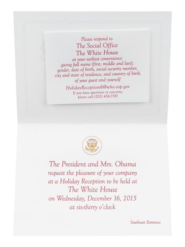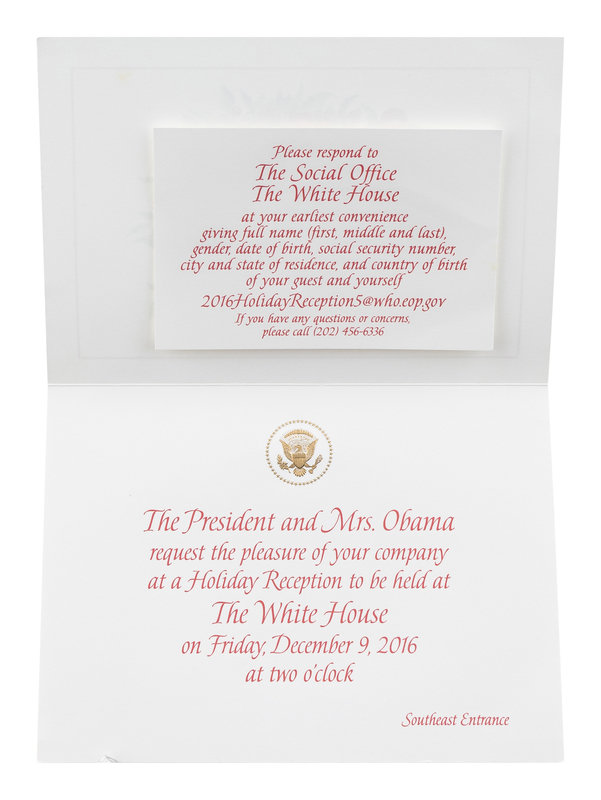 [With]: A group of 3 invitations to holiday events at the White House issued during the 2013, 2015, and 2016 holiday seasons.