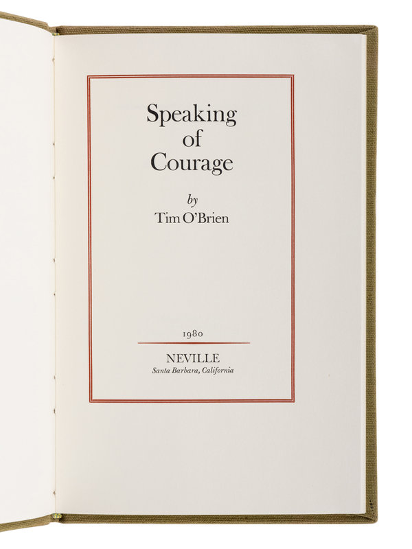 [With:] O’BRIEN. Speaking of Courage. Santa Barbara, CA: Neville, 1980. 8vo. Original cloth, printed paper labels (spine sunned). FIRST EDITION, LIMITED ISSUE, number 53 of 300 numbered copies, SIGNED BY O’BRIEN.