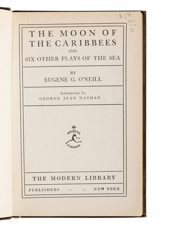 [With]: O’NEILL. The Moon of the Caribbees and Six Other Plays of the Sea. New York: The Modern Library, 1923. 8vo. Original roan.