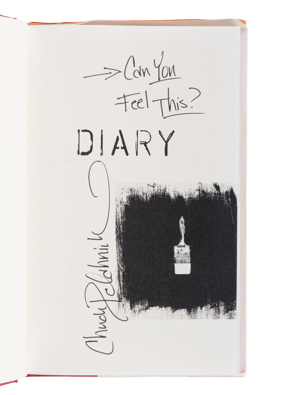 2) Diary. New York: Doubleday, 2003. Original cloth; publisher’s dust jacket. PRESENTATION COPY, INSCRIBED BY PALAHNIUK.
