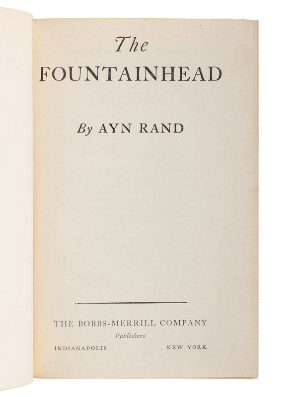 RAND, Ayn (1905-1982). The Fountainhead. Indianapolis and New York: The Bobbs-Merrill Company, 1943.