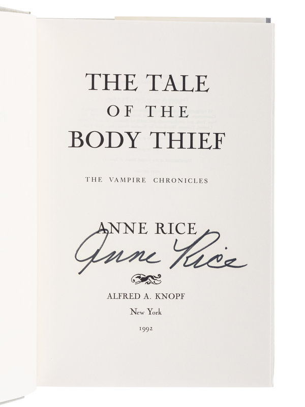 5) The Tale of the Body Thief. New York: Alfred A. Knopf, 1992. FIRST EDITION. SIGNED BY RICE.