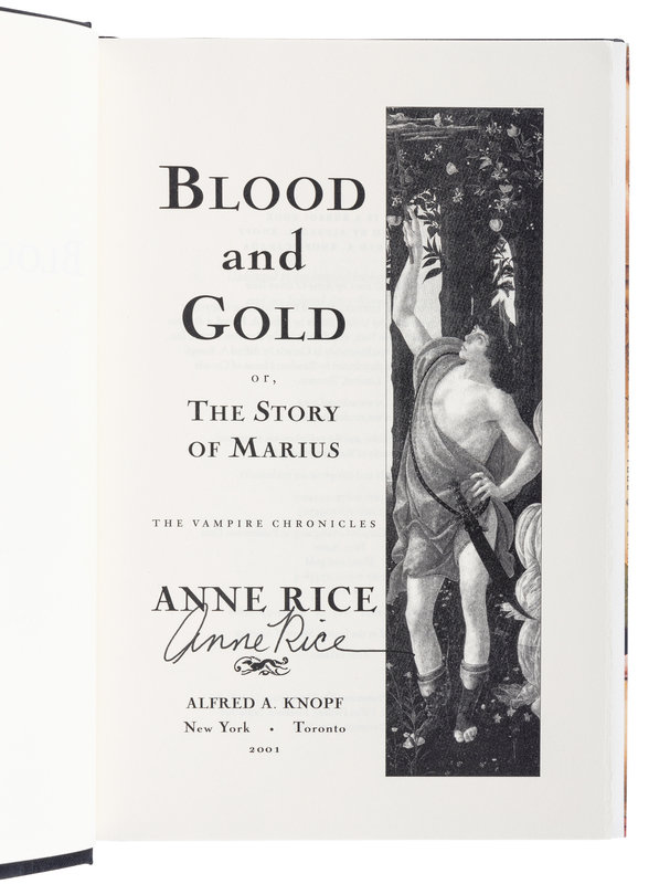 9) Blood and Gold or, The Story of Marius. New York: Alfred A. Knopf, 2001. FIRST EDITION. SIGNED BY RICE.