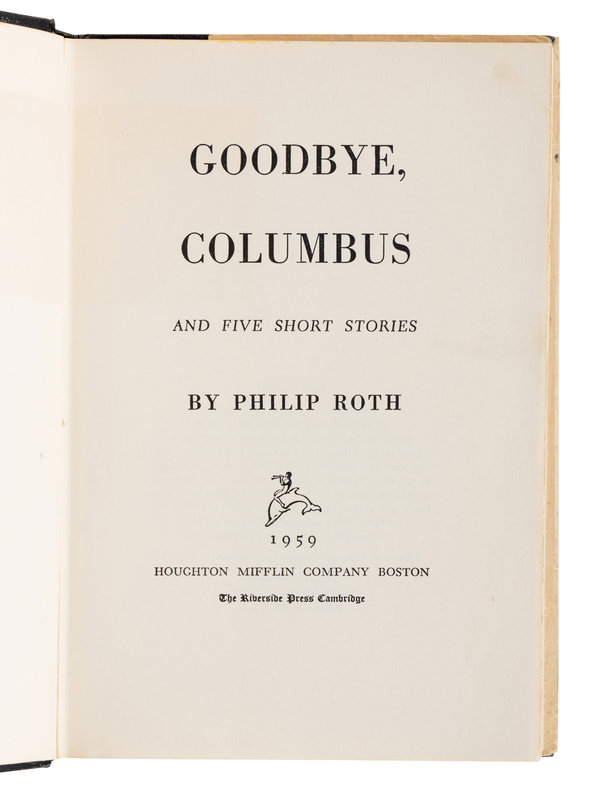 ROTH, Philip (1933-2018). Goodbye, Columbus. Boston: Houghton Mifflin Company, Inc., 1959.