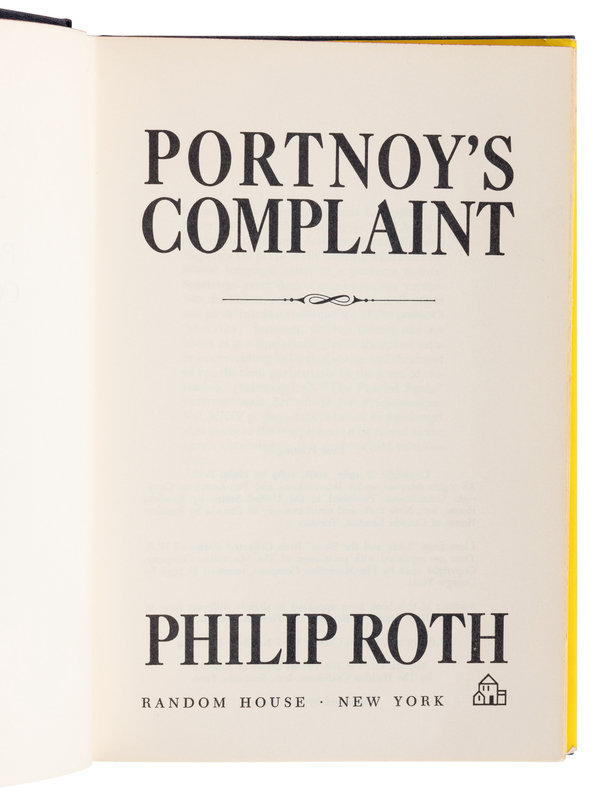 ROTH, Philip (1933-2018). Portnoy’s Complaint. New York: Random House, 1969.