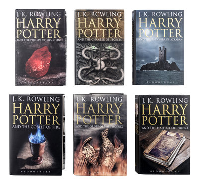 FIRST BRITISH ADULT EDITIONS. The adult editions of the wildly successful Harry Potter series were created in order to give the books a more sleek, “mature” appearance for older readers.