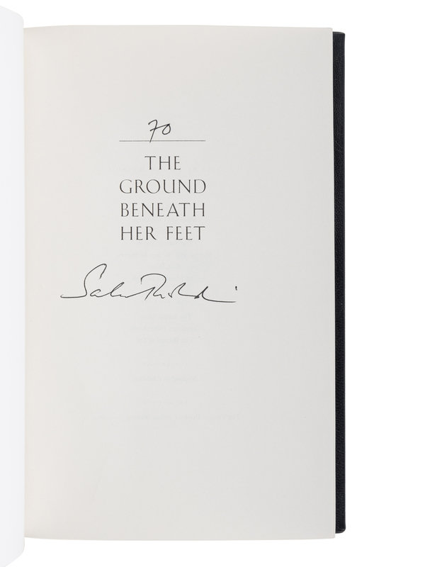 FIRST EDITION, LIMITED ISSUE, number 70 of 100 copies SIGNED BY RUSHDIE on the half-title and in a deluxe morocco binding. The Ground Beneath her Feet is a variation on the Orpheus/Eurydice myth, with rock music replacing Orpheus’s lyre. It has been adapted into a major performance work combining music, composed by Victoria Borisova-Ollas, and film, directed by Mike Figgis.