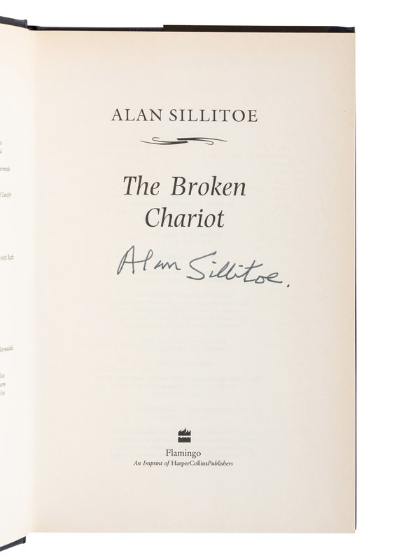 3) The Broken Chariot. London: Flamingo an Imprint of HarperCollins, 1998. FIRST EDITION, SIGNED BY SILLITOE on title-page.