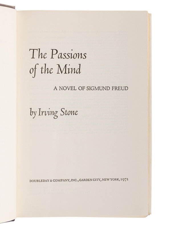 STONE, Irving (1903-1989). The Passions of the Mind. Garden City, NY: Doubleday & Company, Inc., 1971.