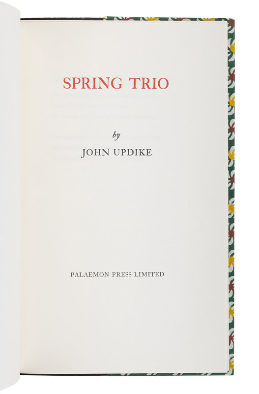 UPDIKE, John (1932-2009). Spring Trio. Winston Salem, NC: Palaemon Press, 1982.