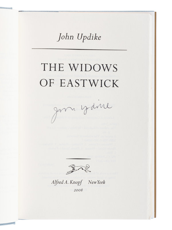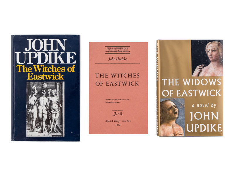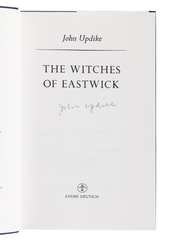 [With:] UPDIKE. The Witches of Eastwick. London: Andre Deutcsh, 1984. 8vo. Original cloth; publisher’s dust jacket. FIRST ENGLISH EDITION, SIGNED BY UPDIKE on the title-page. -- UPDIKE. The Widows of Eastwick. New York: Alfred A. Knopf, 2008. 8vo. Original cloth; publisher’s dust jacket. FIRST EDITION.