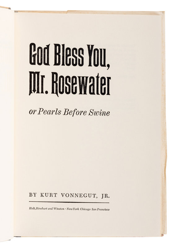 4) God Bless You, Mr. Rosewater or Pearls Before Swine. New York, Chicago, and San Francisco: Holt, Rinehart and Winston, 1965. FIRST EDITION.