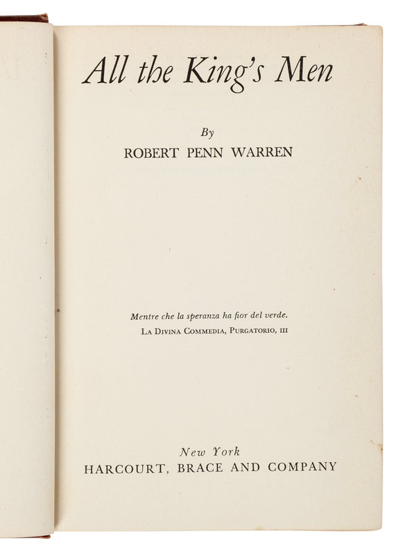 WARREN, Robert Penn (1905-1989). All The King's Men. New York: Harcourt, Brace and Company, 1946.