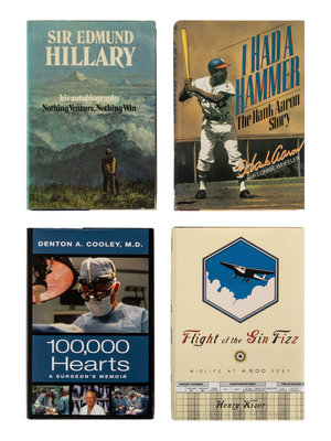1) AARON, Hank. I Had A Hammer: The Hank Aaron Story. New York: HarperCollins Publishers, 1991. Original cloth; publisher's dust jacket. FIRST EDITION. SIGNED BY AARON.