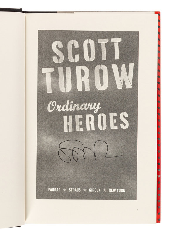 9) TUROW, Scott. Ordinary Heroes. New York: Farrar, Straus, & Giroux, 2005. 8vo. Publisher's cloth; original dust jacket. FIRST EDITION, SIGNED BY TUROW on title page.