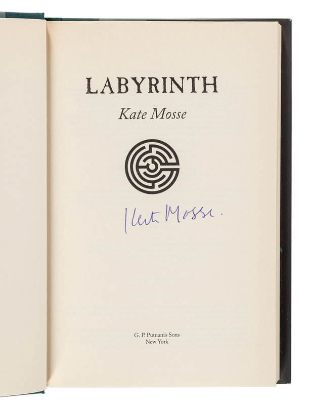 5) MOSSE, Kate. Labyrinth. New York: G.P. Putnam's Sons, 2005. 8vo. Publisher's cloth; original dust jacket. FIRST EDITION, SIGNED BY MOSSE on title page.