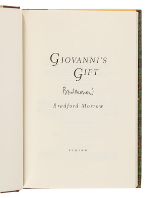 4) MORROW, Bradford. Giovanni's Gift. New York: Viking, 1994. 8vo. Publisher's cloth; original dust jacket. FIRST EDITION, SIGNED BY MORROW on title page.