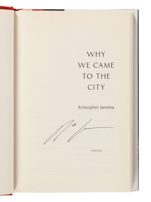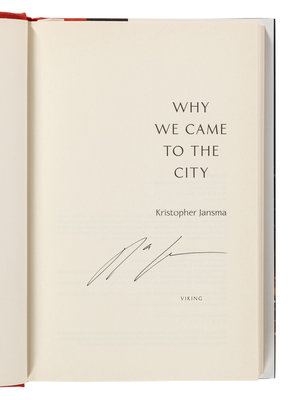 3) JANSMA, Kristopher. Why We Came to the City. New York: Viking, 2016. 8vo. Publisher's cloth; original dust jacket. FIRST EDITION, SIGNED BY JANSMA on title page.