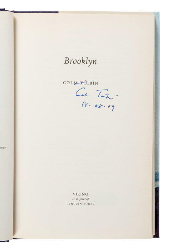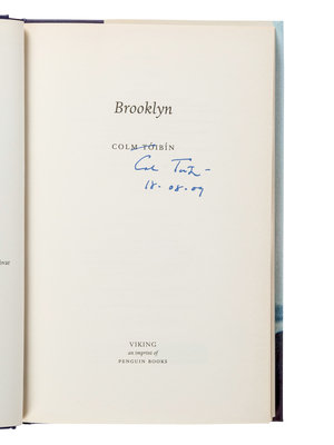 8) TOIBIN, Colm. Brooklyn. New York: Viking, 2009. 8vo. Publisher's cloth; original dust jacket. FIRST EDITION, SIGNED BY TOIBIN on title page.